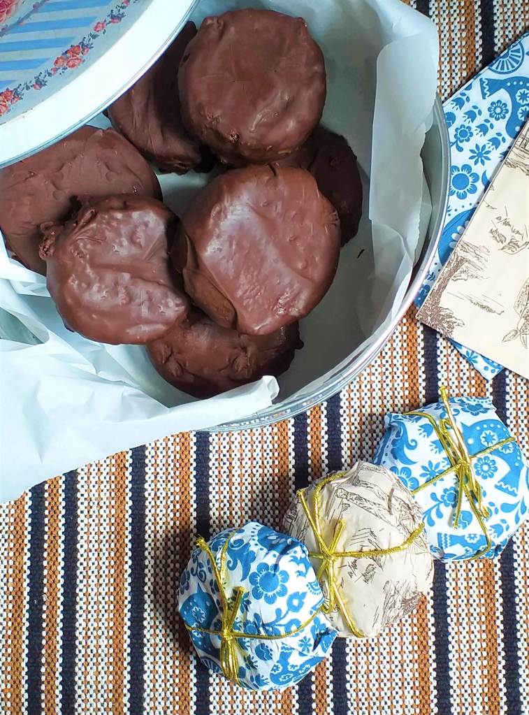 Até as professoras preferidas ganharam um! Embrulhei em guardanapos de papel decorados e amarrei com um cordão dourado. Ficaram lindos!