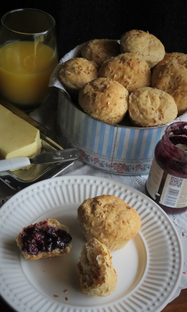 É ótimo no café da manhã, no lanche da tarde ou a hora que você quiser! Estou pensando agora, que dá pra fazer maior e usar como pão de hamburguer! Vou testar!