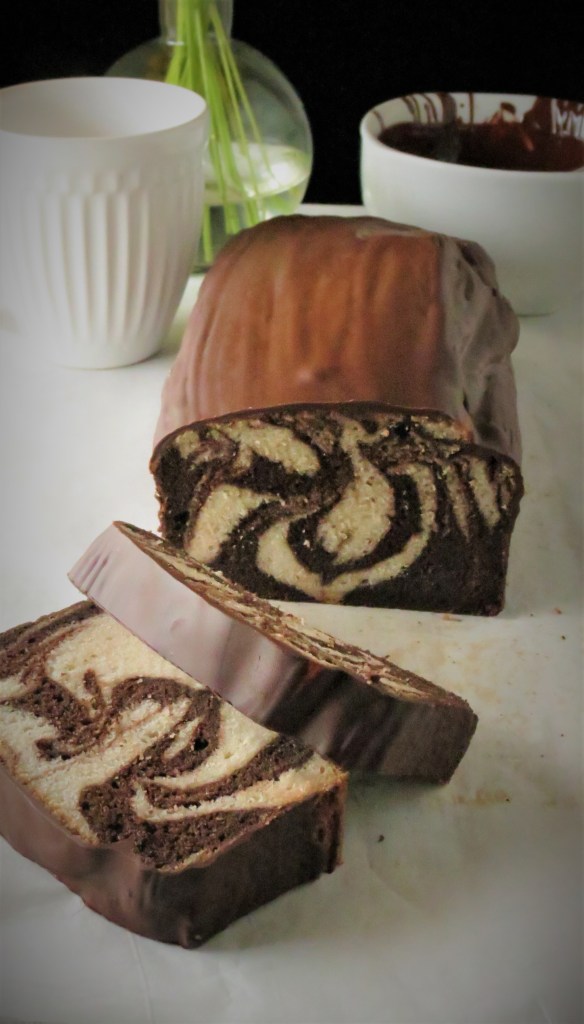 Parece ser uma receita trabalhosa, mas não é. Na verdade é um bolo simples, onde se separa uma porção de massa para adicionar o chocolate. Depois , às colheradas, coloca-se a massa na forma, e com um palito de churrasco, mistura-se delicadamente as duas cores.