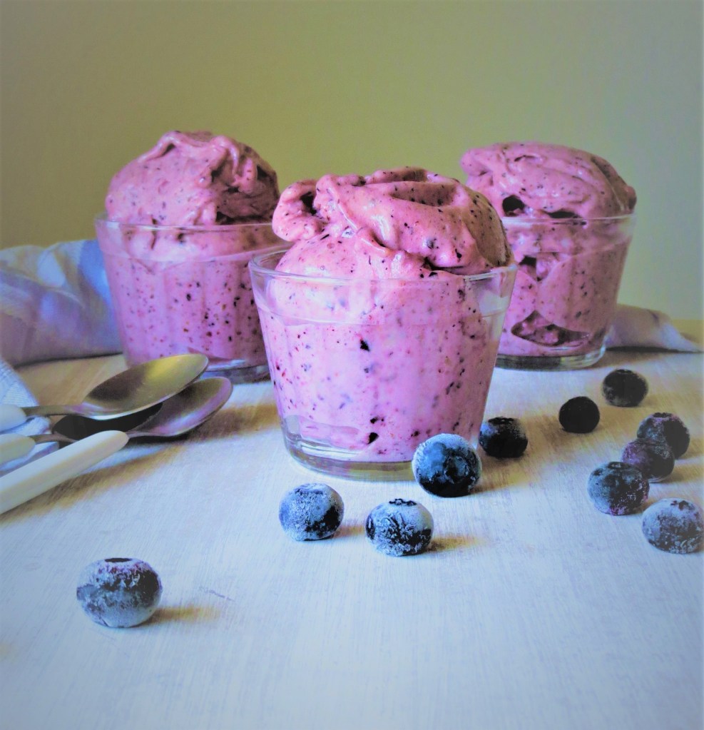 Adoro estes gelados saudáveis. Também costumo fazer. Este está com uma cor linda dos mirtilos e com tão bom aspeto 👍