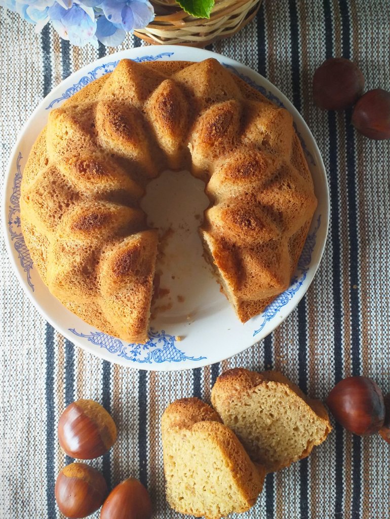 Como a castanha portuguesa não contém quase nada de gordura, é necessário acrescentar uma. Eu não gosto de usar óleo em bolo, acho que fica untuoso… Prefiro usar uma emulsão, no caso creme de leite vegetal. Aqui usei creme de leite de aveia, que tem um sabor bem neutro . O bolo fica úmido e macio sem deixar a massa gordurosa. Tem receita de creme de leite de leite de aveia aqui no blog, veja aqui: https://alergiazero.blog/2021/04/23/creme-de-leite-de-aveia/